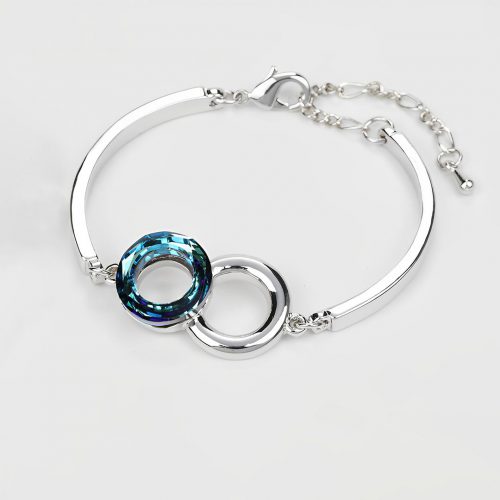 S925 Mother And Daughter Forever Linked Together Circle Crystal Bracelet