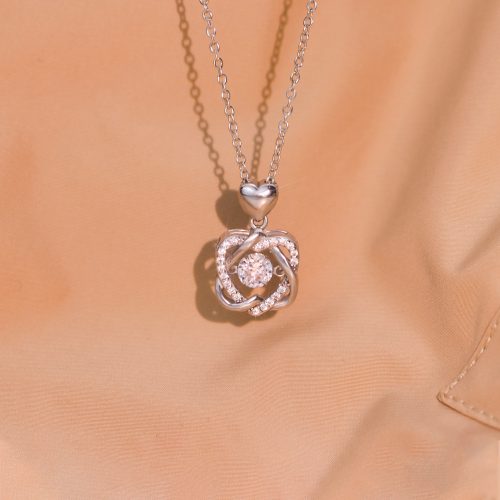 For Granddaughter – S925 Side by Side or Miles Apart We’re Connected by Heart Love Knot Necklace