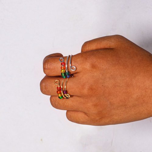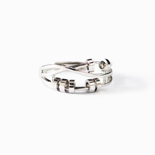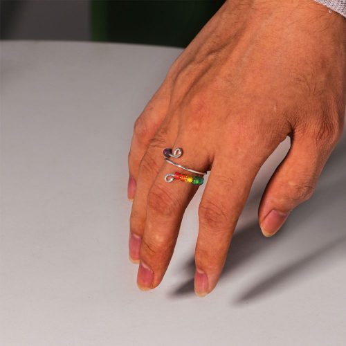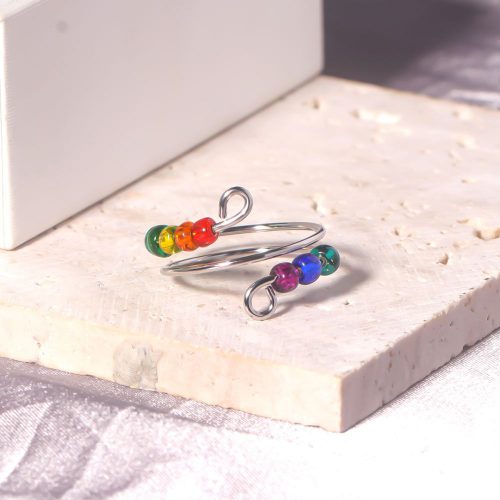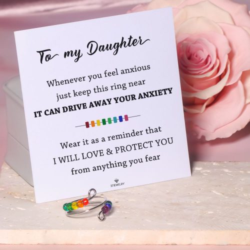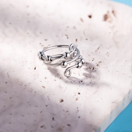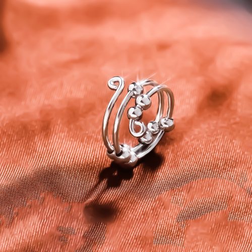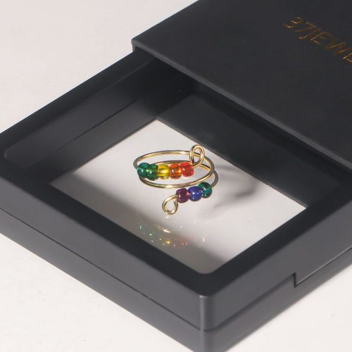 - 1*S925 Drive Away Your Anxiety Rainbow Beads Fidget Ring