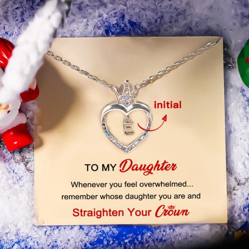 For Daughter – S925 Whenever You Feel Overwhelmed Remember Whose Daughter You are Crown Initial Necklace