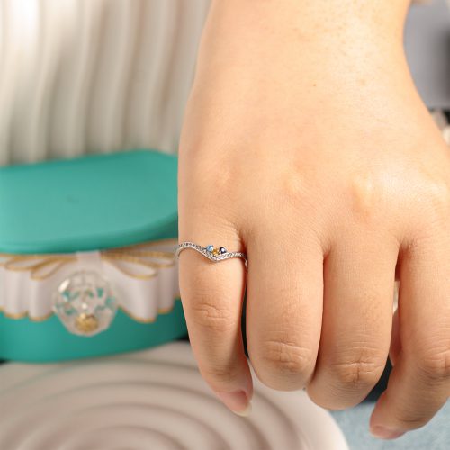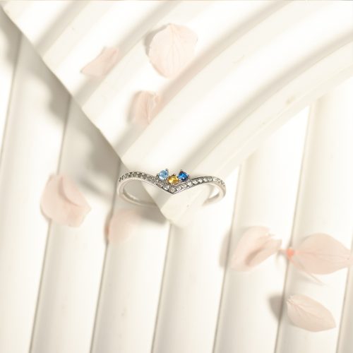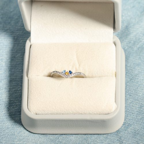 For Grandmother – Custom Birthstones Chevron Pave Ring