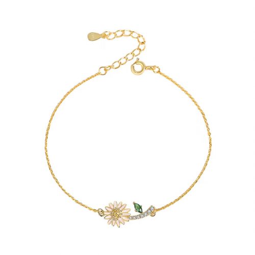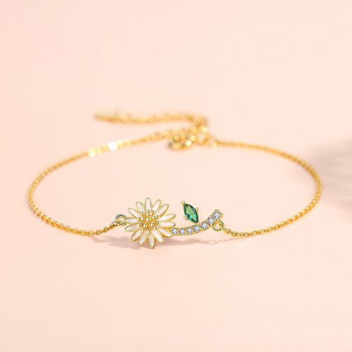 - 1*For Love – S925 I Think About You Every Daisy Sterling Silver Small Daisy Bracelet
