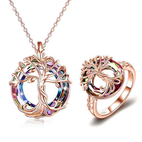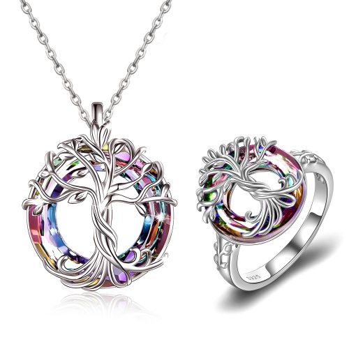 For Mom – S925 Mother is the Family Root Tree Crystal Necklace – Up To 27”