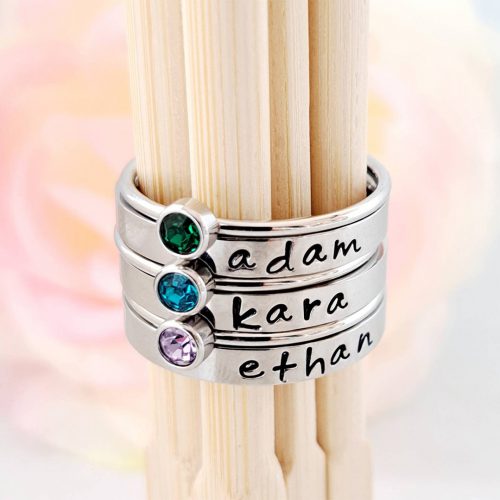 - 1*For Mother – Moms Can Keep Their Kids Close Single Birthstone Name Custom Stackable Ring