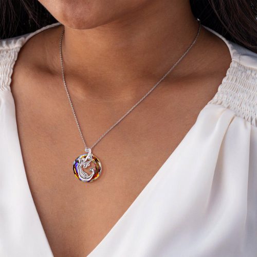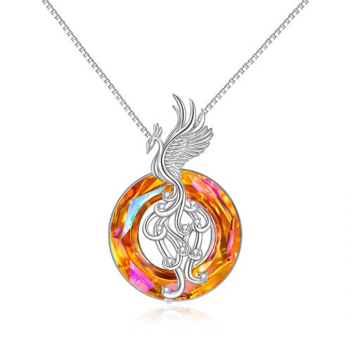 - 1*S925 The Fire Inside Me Burns Brighter Than The Fire Around Me Colorful Crystal Phoenix Necklace