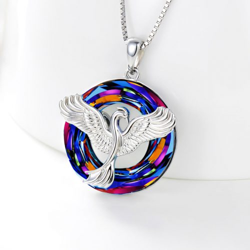 - 1*S925 The Fire Inside Me Burns Brighter Than The Fire Around Me Crystal Rising Phoenix Necklace