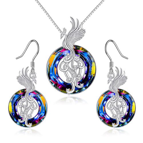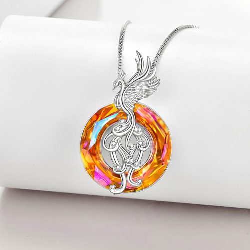 - 1*S925 The Fire Inside Me Burns Brighter Than The Fire Around Me Firebird Crystal Phoenix Necklace