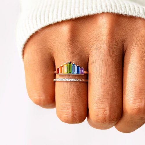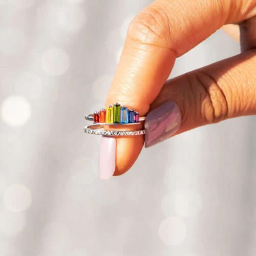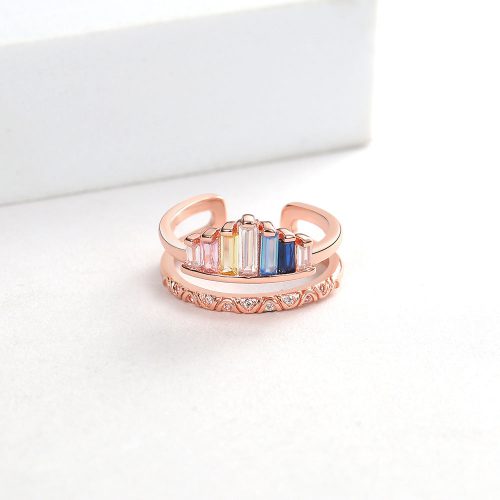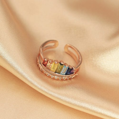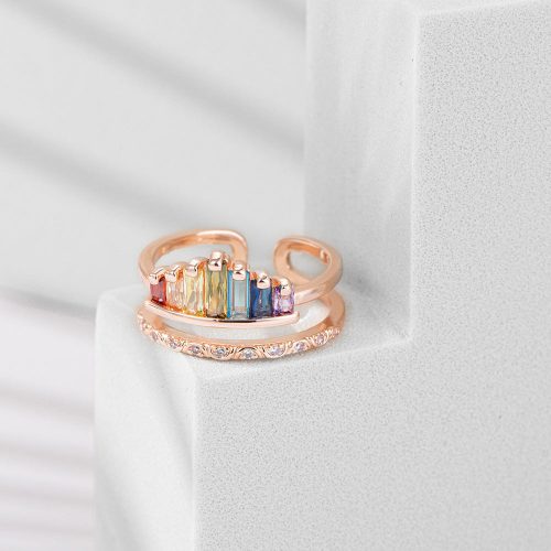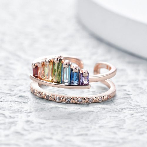 S925 Just for Now We are Apart but Keep Me Safe Within Your Heart Rainbow Ring