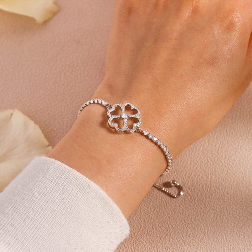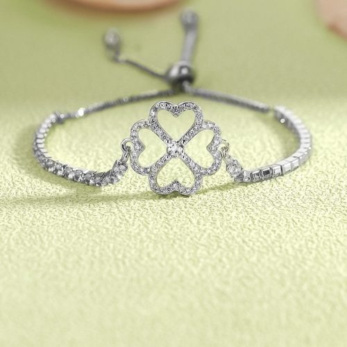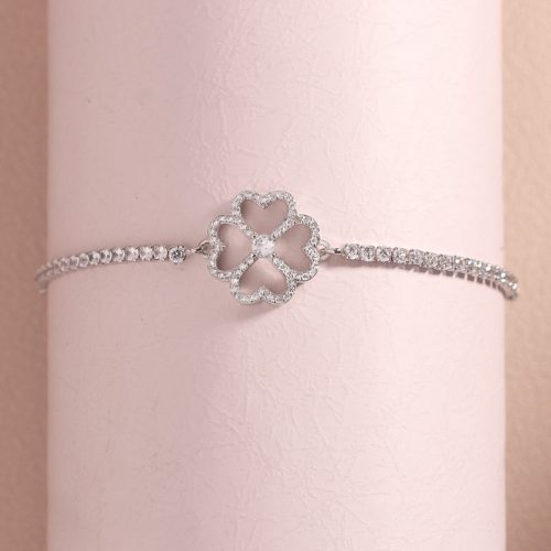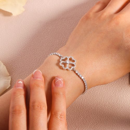 - 1*S925 May Your Troubles be Less Your Blessings be More Four Leaf Clover Tennis Bracelet