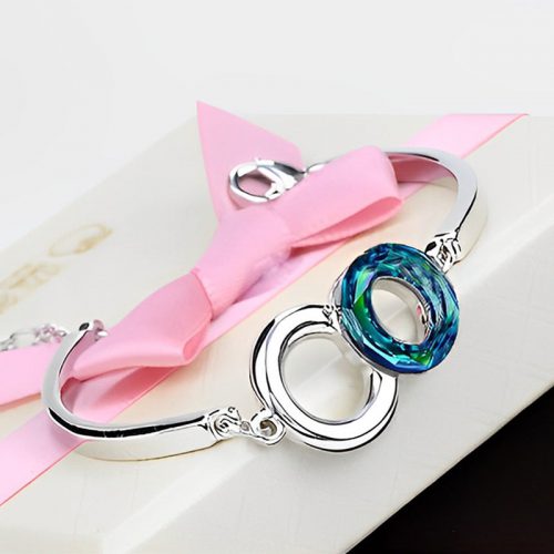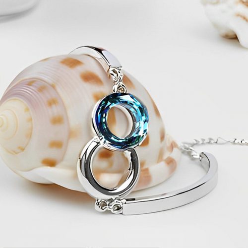 S925 Mother And Daughter Forever Linked Together Circle Crystal Bracelet
